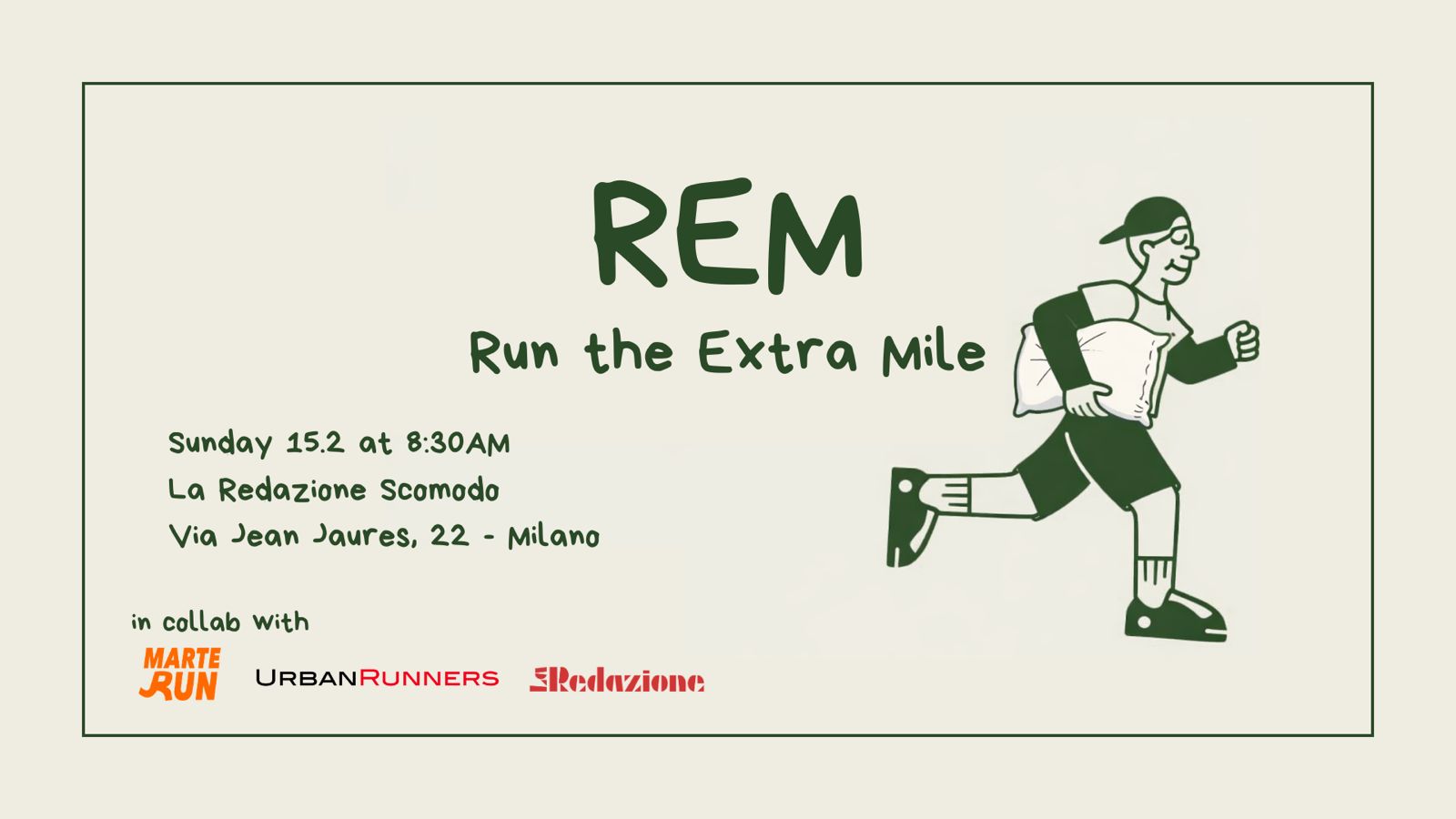 Unisciti a noi per una corsa epica di lunga distanza. Che tu sia un runner esperto o abbia semplicemente voglia di provare qualcosa di nuovo, REM significa spingersi un po’ oltre e godersi ogni passo.